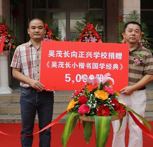 吴茂长向正兴学校捐赠了5000册《吴茂长小楷书国学经典》丛书