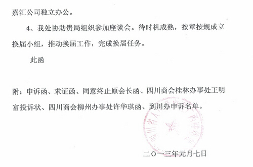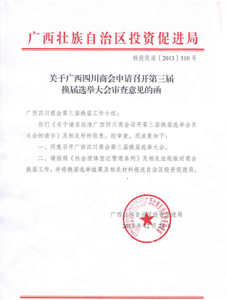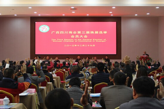 2013年12月29日,经广西壮族自治区促进局(桂投促函[2013]510)号文件批准,广西四川商会第三届换届选举会员大会顺利召开,200多名会员和南宁成都商会、北海四川商会、桂林四川商会、柳州四川商会、玉林川渝商会、百色川渝商会、凭祥川渝商会和东兴四川商会等广西各地四川(川渝)商会团体代表、南国雄鹰律师事务所蓝中华等两名见证律师参加了会议,会议无记名投票选出了以广西和润集团董事长李润先生为会长的领导班子。