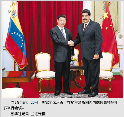 马杜罗表示,我同习近平主席进行了全面深入友好的交谈,就发展委中合作,推动拉中合作达成重要共识。委内瑞拉将沿着查韦斯前总统开辟的道路,不断发展同中国的全面战略伙伴关系。