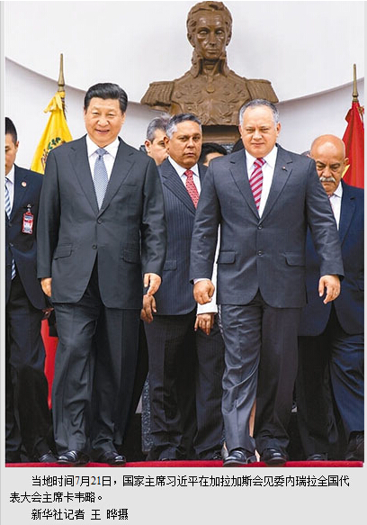 本报加拉加斯7月21日电 (记者杜尚泽、丁大伟)当地时间7月21日,国家主席习近平在加拉加斯会见委内瑞拉全国代表大会主席卡韦略。