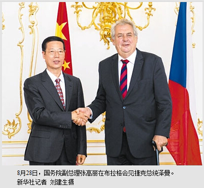 新华社布拉格8月29日电 (记者刘东凯、赵毅、曲曦)国务院副总理张高丽28日在布拉格出席第二次中国—中东欧国家地方领导人会议并发表讲话,与会期间会见了捷克总统泽曼、总理索博特卡。