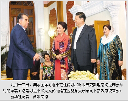 本报杜尚别9月13日电 (记者杜尚泽、黄文帝)国家主席习近平12日出席塔吉克斯坦总统拉赫蒙举行的家宴。两国元首在亲密愉快的气氛中话家常、叙友谊、谈合作,就发展双边关系及共同关心的问题深入交换意见。