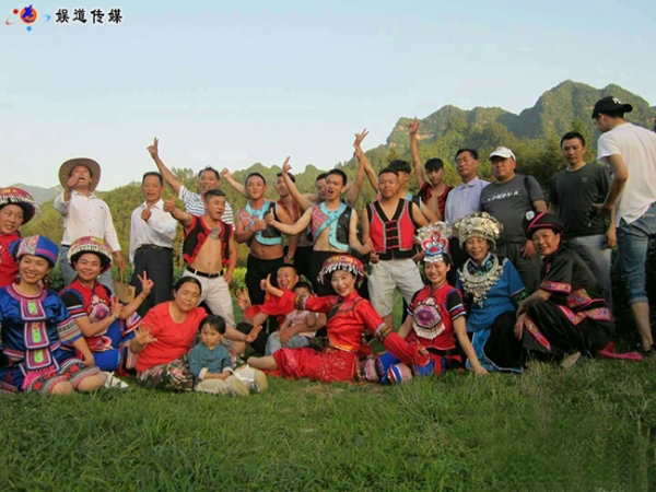 夏冰导演和歌舞诗《龙船调的家》柏杨农民们在一起