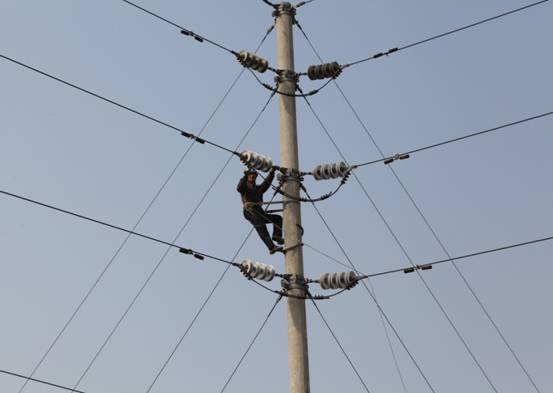 (图为工作人员在进行线路检修)