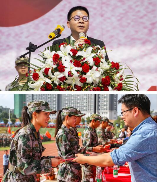军训团付忠和团长在典礼上发表讲话:“通过本次军训,同学们增强了纪律观念和团结拼搏的集体主义思想,培养了敢于吃苦、敢于克服困难的大无畏精神,同学们掌握了基本的军事知识和技能,增强了国防观念,激发了爱国热情,磨练了大家的意志品质,希望同学们坚持学习科学文化知识与加强思想道德修养相统一,树立远大理想,努力将自己塑造成一名文武双全的优秀青年。”