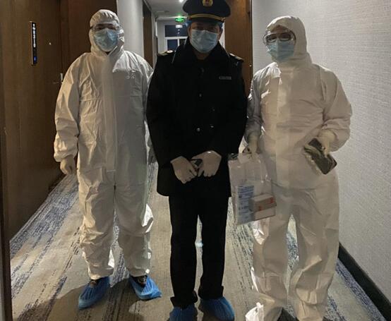 (张琳在新化医学观察隔离点检查与医护人员合影)