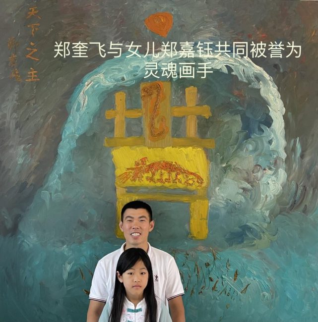 郑嘉钰:郑奎飞女儿,2011年生,人称绘画神童,父女共同被誉为“灵魂画手”。郑奎飞、郑嘉钰父女代表作《真龙下凡》被天安门城楼收藏,还有多部作品被其他国家收藏家、政要、学者收藏,10岁出版画册《元宇宙》(与父亲郑奎飞共同绘著)。