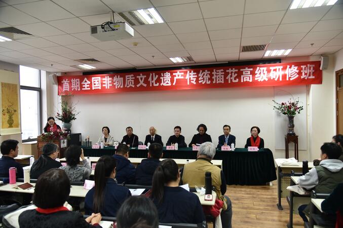 在国家级非物质文化遗产传统插花代表性传承人王莲英的倡议下,1月13日,由中国民俗学会插花专业委员会、北京插花艺术研究会、北京插花协会主办的首期全国非物质文化遗产传统插花高级研修班开班仪式在北京林业大学园林学院举行。