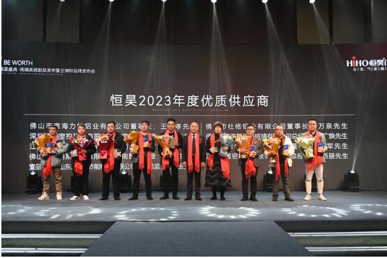 在恒昊2023优质供应商颁奖环节中,诸多获奖嘉宾逐一登台领奖,他们作为恒昊门窗的年度优质供应商,此奖项不仅是对双方2023精诚合作的最大肯定,更是对2024年双方更好合作的铮铮承诺,是合作,亦是共赢。