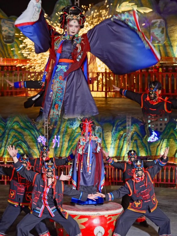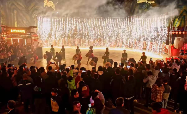 非遗打铁花,1600度的铁水在击打下绽放出绚烂的火树银花。