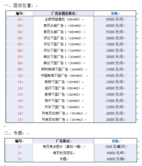 人民日报欧洲网广告形式及价格表