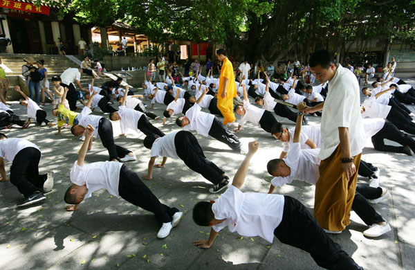 环法选手遇比基尼诱惑 学生暑期受训少林寺