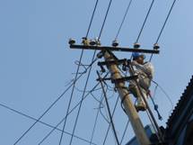 改造工程历时两个多星期,城关所低压一班逐项完成了破损电杆更换、金具瓷瓶更换、绝缘导线更换、计量箱更换等工作。由于施工地段基本处于道路两侧,人流密集,为了保证过往行人的安全,因此施工时特别设立了交通安全疏导员。在中小学放学时段,杆上人员停止施工,以绝对保障路过施工地段边缘的学生的安全。由于施工正处于天气骤冷、风沙较大、雾霾严重的初冬季节,参与施工人员不是被风沙吹得面目通红,就是因气温和变化和雾霾导致呼吸道感染,但没有一人叫苦叫累,中途退出。身体条件不好,就在杆下从事力所能及的工作,在确保安全的前提下尽力抢工期,以保证在冬季用电高峰期前使群众用上放心电。