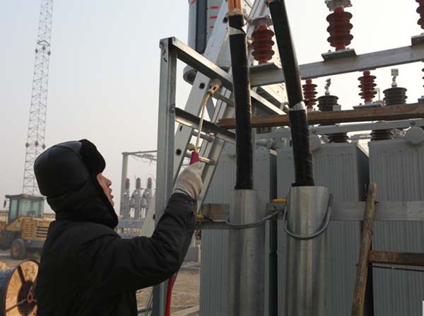 12月24日上午,在大城县供电公司位敢35千伏变电站原址新建现场,施工人员正在拿着喷枪烘烤着僵硬的电缆,准备剥离电缆外皮,为2台新安装的10000千伏安主变一次出线做电缆终端头;在田家庄综合变压器改造现场,施工人员伫立杆顶,在雾霾寒风中,为变压器安装台架、改造10千伏线路。这是该公司为铸造坚强电网,全力以赴,奋力冲刺农网升级工程,保证电网建设质量,助力县域经济发展的一个缩影。