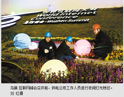 “恪尽职守,全力以赴,保电护航,坚决完成第二届世界互联网大会保供电任务。”12月14日早上,在乌镇保供电现场举行了庄严的宣誓仪式,当日,有800余名国网浙江省嘉兴供电公司保电员工和省公司系统兄弟单位的支援人员奔赴现场。此次会议共出动保电人员超过3500人次,圆满实现了“零故障、零闪动、零差错、零投诉”的“四零”保电目标。