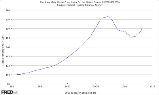 利率是房地产市场的双刃剑,央行压低利率会促使个人杠杆扩张购买自己加息以后根本无法承担的房产,这才导致了次贷危机。而现如今美联储不断强调将压低市场利率在0%的水平,并在QE3时选择了购买MBS(主要由美国住房专业银行及储蓄机构利用其贷出的住房抵押贷款发行的一种资产证券化商品)而非国债,这样的行为会否导致第二次次贷危机呢?我司认为,在未来美联储美元减少购买资产的大趋势下,我们可以通过利率水平与房价的变动关系来做进一步的观察。但仅从目前的情况来看,美国房地产行业的复苏更像是基本面供需推动的,而并非金融化以及流动性所推动的。后者目前只能起到锦上添花的作用,而非决定性的泡沫化作用。