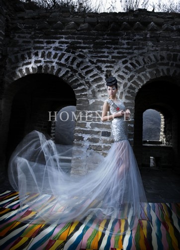 大气、唯美的“宏耐星座地板,登上万里长城”时装大片。