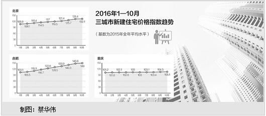 针对房价过快上涨的问题,一些大中城市于10月份前后出台了限购限贷等调控措施。调控在10月当月便见到成效:据国家统计局初步测算,10月份一、二线城市新建商品住宅价格环比分别上涨0.5%和1.3%,分别比9月份回落2.8和1.0个百分点。70个大中城市中,一线城市和二线城市房地产市场明显降温。