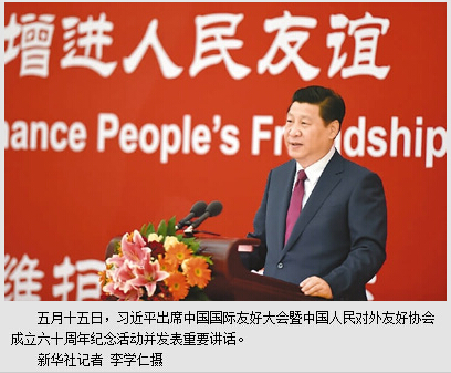 习近平表示,长期以来,中国人民对外友好协会贯彻中国奉行的独立自主的和平外交政策,在国际社会和世界各国广交深交朋友,发挥了不可替代的作用。
