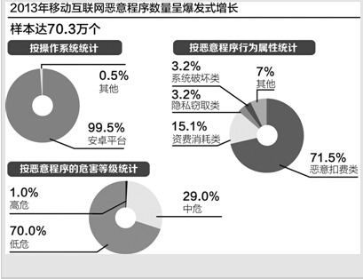 移动互联网面临严重安全问题。根据思科公司统计,2013年全球移动数据流量增长了81%,预计到2018年还将较2013年增长11倍,其中半数流量卸载到Wifi(无线保真)。2013年底我国4G牌照的发放加快了移动互联网的发展。按照工信部统计,截至2014年1月,我国移动互联网用户数占移动电话用户的67.8%,移动互联网接入流量同比增长46.9%,户均移动互联网接入流量达到165.1MB,其中手机上网流量占比提升至80.8%。大量移动互联网用户的增加导致了移动终端设备越来越多样,这也意味着管理起来将更加困难。移动终端受功耗等限制,无法像个人计算机那样内置功能强大的防火墙。安卓移动操作系统尽管已经使用了针对应用软件的签名系统,但黑客仍然能使用匿名的数字证书来签署他们的病毒并发放。安卓4.0版本中内置的无线通信接入的密码远程备份功能可被用来定位用户,苹果公司的手机云计划能够读取用户在手机云中所存的信息。基于智能终端的移动支付方便了用户,但传统的账号+密码+短信的身份验证方式存在安全风险,手机卡可能被复制,验证短信有可能被劫持,支付指令在传输中也可能被篡改。可见,移动互联网的安全问题是当前网络安全面临的一个重要挑战。