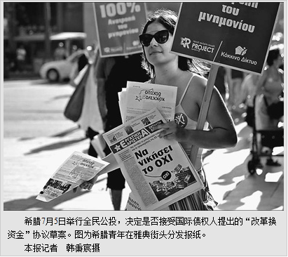 7月5日,深陷债务危机的希腊迎来一次不仅对国家命运,同时也对欧盟未来命运至关重要的全民公投。约1000万希腊人通过手中的一票,决定是否接受国际债权人的新一轮救助提议,而各界普遍认为,这次公投将决定希腊是否继续留在欧元区。