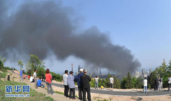 6月2日,中石油大连石化分公司厂区因爆炸冒出滚滚黑烟。刘德斌 摄