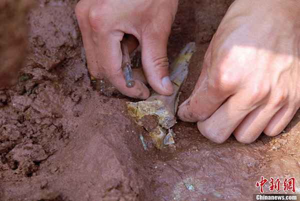 图为恐龙化石发掘现场。李庆盛 摄