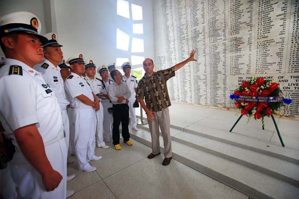 9月7日,中国海军舰艇编队抵达美国夏威夷珍珠港进行友好访问进入第二天,继续与美国海军太平洋舰队官兵开展多种形式的军事文化交流活动。中国海军官兵参观了太平洋战争博物馆,登上具有历史意义的美国海军 “密苏里”号战列舰和“亚利桑那”纪念馆,了解二战期间日本侵略者对世界和平造成的破坏。