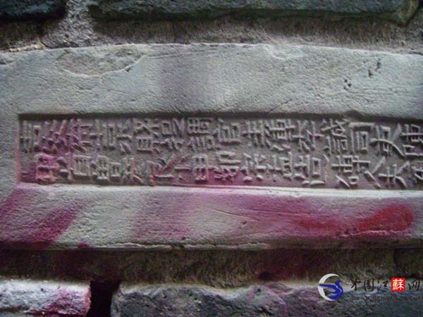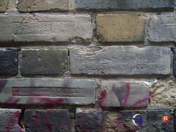 昨天下午,扬子晚报记者到现场寻找这处由城砖建造的老房子。辗转寻觅,终于在解放东路与八宝东街交会处,发现了网友所说的城砖老楼,此处位于尚书村,外围有两栋老居民楼,被改成了门面房,都是两层小楼。这些门面房以南及后面,还有另外三栋老楼房,附近有人在忙着卸门窗等木制品。就是这5幢楼是用墙城砖砌起来的。从这些房子侧面没有被水泥和白灰遮盖起来的地方,可以明显看出来是由带有砖文的青砖堆砌的。城砖上有着各种细小的文字,写着类似于“吉安府”、“提调官”、“造砖人”以及各种姓名等标志。
