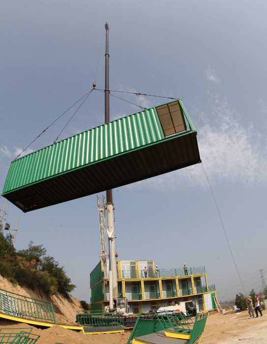 9月14日,一家“集装箱宾馆”在烟台市莱山区朱雀山生态旅游度假区落成。“集装箱宾馆”由24个标准化集装箱组成,共三层,房间内设有电视、空调和整体卫浴,适合“背包族”和“驴友”居住。由于经过特殊处理,“集装箱宾馆”的房间具有绝缘隔热、隔音效果好、坚固耐用、低碳节能等特点。与传统建造方式相比,“集装箱宾馆”不仅缩短工期,节约成本,还可回收再利用。据悉,“集装箱宾馆”将于“十一” 黄金周期间正式投入使用。