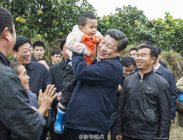 习近平来到果园深处,同来收购的贵州客商聊起来。收购价是多少、有无滞销……他问得很仔细。看到村民们脸上洋溢着丰收的喜悦,听说家家户户都种上了果树,习近平说:“大家高兴吧?丰收了,还能卖好价钱。祝大家的果园发展越来越好,每个家庭都勤劳致富奔小康。”