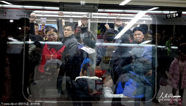 郑州地铁首次迎公众假日 客流压力致“爆棚”