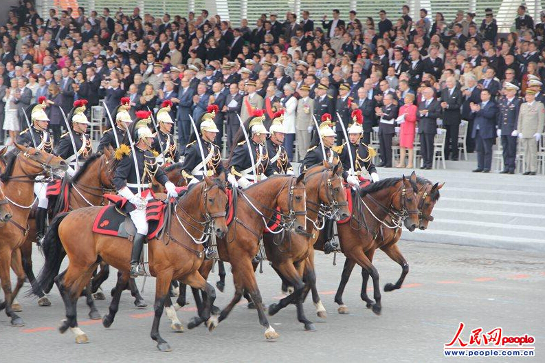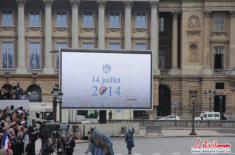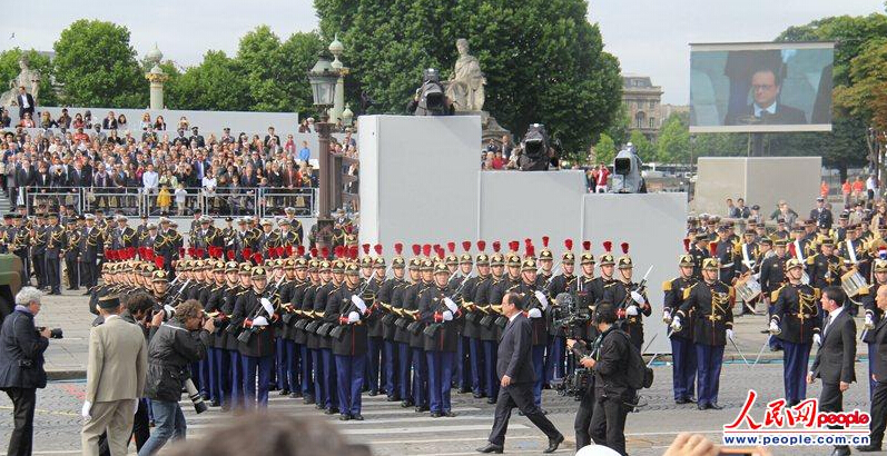 法国总统奥朗德检阅仪仗队。人民网记者邢雪摄