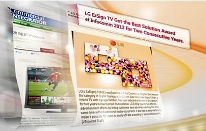面对日益激烈的竞争,越来越多的企业开始选择借助数字标牌系统来提升自身的品牌形象,同时也倾向于利用多媒体显示系统作为广告载体,以求为企业创造更多的盈利。而对于中小企业主而言,怎样控制成本达成最优的效果是他们最重视的难题。他们希望有一款产品可以根据自己的特殊需求灵活方便的更换显示内容,还可以一屏多用的显示视频与信息文字,更要有超高的性价比。商用显示领域素有威望的LG电子,针对中小企业主近乎苛刻的要求,巧妙将商用电视与数字标牌完美结合,推出了世界上第一款具有数字标牌功能的电视—“易视”。