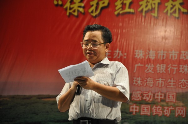 被誉为红树林之子、珠海淇澳-担杆岛省级自然保护区管理处主任杨雄邦在晚会发表讲话。他表示:今天,我们在这里隆重纪念这个日子,就是要弘扬党的十八大提出“建设美丽中国”的理念,保育自然,拯救地球, “共建美丽珠海,共享美好生活”。我们发出“保护红树林,共建美丽珠海”的倡仪。我们呼吁,社会各界和市民群众,积极参加红树林保护建设的行动,共同保育红树林湿地,保护生态环境,共建美丽珠海,为珠海市创建全国生态文明城市贡献力量!