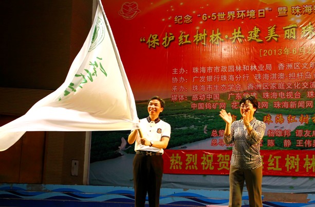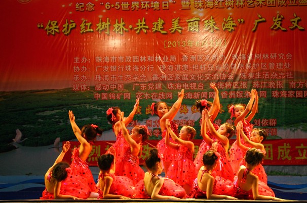 为了弘扬党的十八大提出“建设美丽中国”的理念,保育自然,拯救地球,“共建美丽珠海,共享美好生活”,倡导社会各界和市民群众参与创建全国生态文明城市,6月2日晚,由珠海市政园林和林业局、珠海淇澳-担杆岛省级自然保护区和香州区文明办主办,广发银行珠海分行、珠海红树林研究会和珠海生态学会协办,珠海市香洲区家庭文化交流协会和珠澳生活杂志社承办的纪念六•五世界环境日暨珠海红树林艺术团成立盛典——“保护红树林•共建美丽珠海”广发文艺晚会在珠海香洲区柠溪文化广场隆重举行。