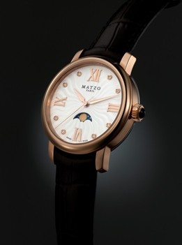 巴黎美爵MATZO PARIS自开创品牌以来,与宇宙就有着千丝万缕的情节,从最初的宇宙幻想到如今的实际科技运用,其设计理念凝聚了数代腕表设计师的创作灵感,形成了现今巴黎美爵MATZO PARIS数款宇宙科技系列的腕表家族。其中“宇宙”腕表是巴黎美爵MATZO PARIS为了纪念法国最著名的天体力学的奠基人拉普拉斯侯爵而专门设计的一款,腕表的表盘上镌刻有巴黎美爵MATZO PARIS专有的宇宙光波图案,箭式指针精准精准的指向8颗VVS级钻石镶嵌的刻度标识,白色表盘之上的6点、9点、12点、15点罗马数字累计表盘尽显运动气质,金色表圈与鳄鱼纹真皮表带彰显优雅,六点位置上方的日月星辰造型标识着腕表的专属功能,表盘上散发的水印波纹营造出太空的神秘虚幻效果,这是一款典型的以宇宙幻想为设计源泉的腕表,表达了巴黎美爵MATZO PARIS品牌对未知世界探索的决心。