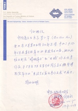 (中国驻土耳其文化参赞证明罗小华作品获土政府邀请亚欧大赛获优秀奖并在国家博物馆展出证明)