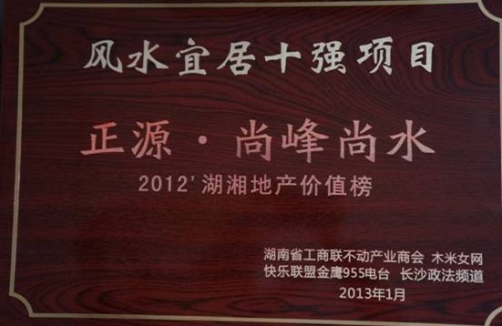“2013年中国湖南最值得期待楼盘”奖是由中国不动产研究中心(CRRC)、搜狐焦点网新房中心提供2012年度各楼盘详情页访问量、论坛访问量、团购人数、电话来电量、成交量、综合指数等各项分析数据,组委会结合投票结果排名与分析数据排名,最终评选出正源长沙“正源尚峰尚水”荣获“2013年中国湖南最值得期待楼盘”。
