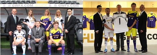 GWFX近日与位于英国威尔士的斯旺西城足球俱乐部(Swansea City AFC)签署赞助协议,成为其官方主赞助商。在2013/14赛季中,斯旺西球员将穿上印有GWFX标志的球衣征战赛场,同时在主场馆“自由球场”中多处位置也会展现GWFX标识。