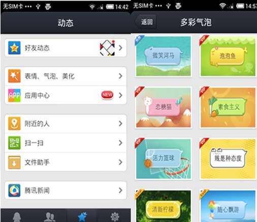 手机QQ所有聊天场景(C2C、QQ群、讨论组、临时会话)发送的文本、图片、语音等信息,均以多彩气泡的个性化形式展现。