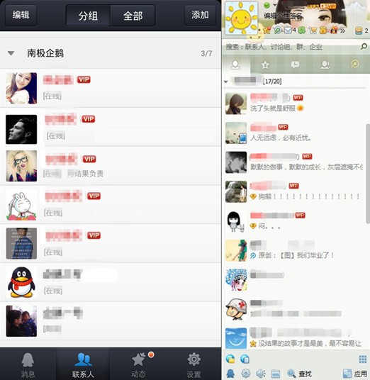 在QQ2013 beta6客户端上,QQ会员除了经典的红色昵称,还增加了VIP显示的身份铭牌。