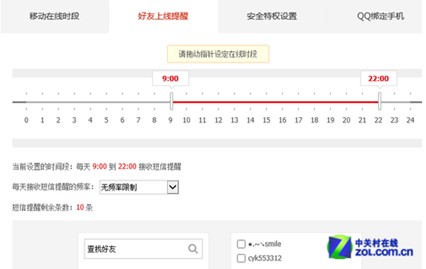 好友上线提醒功能也支持设置提醒时段,也还能够设置每天接收短信提醒的频率,以及批量处理关注好友。好友上线提醒的短信每个月的限额,根据VIP等级而逐步递增。