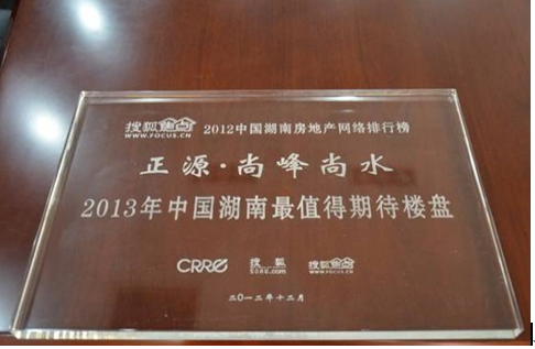 在近日由中国不动产研究中心(CRRC)、搜狐焦点网新房中心举办的“2013年中国湖南最值得期待楼盘”颁奖仪式上,组委会通过2012年度各楼盘详情页访问量、论坛访问量、团购人数、电话来电量、成交量、综合指数等各项分析数据,再结合投票结果排名与分析数据排名,最终评选出正源长沙“正源尚峰尚水”荣获“2013年中国湖南最值得期待楼盘”。