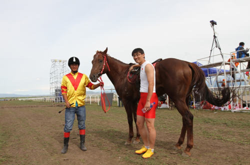 “飞人”胡凯与名为西域风暴的“天马”(曾多次获得过全国冠军)及骑手合影