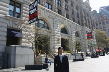 百千万交流计划项目办主任肖延栋在纽约电影学院教学楼前