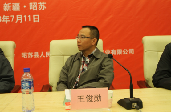 图为全国奶业办公室副主任、新疆畜牧厅副厅长王俊勋