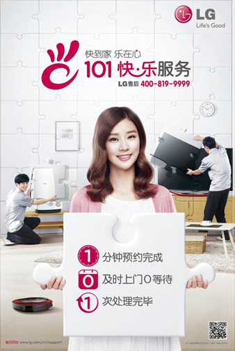 LG电子此次升级后的“101快乐服务”体系,并非单纯的通过口号化的时间概念博取大众眼球,而是协同专业调研团队,针对中国本土市场进行了长时间的调查工作,深入消费者需求从而研发出此套立足于本土市场的售后服务体系。