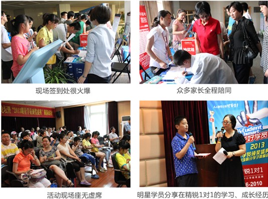 本次“杭城首场高分学子高峰论坛——暨2013明星学员颁奖盛典”活动,全场座无虚席,我们的明星学员也分享了在精锐学习成长的过程,老师、班主任的细心辅导和关心,进步之后的喜悦和感恩。