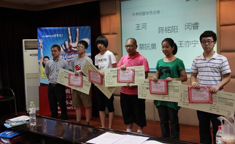 中考明星学员获得明星学员称号并颁发奖学金,继续加油!